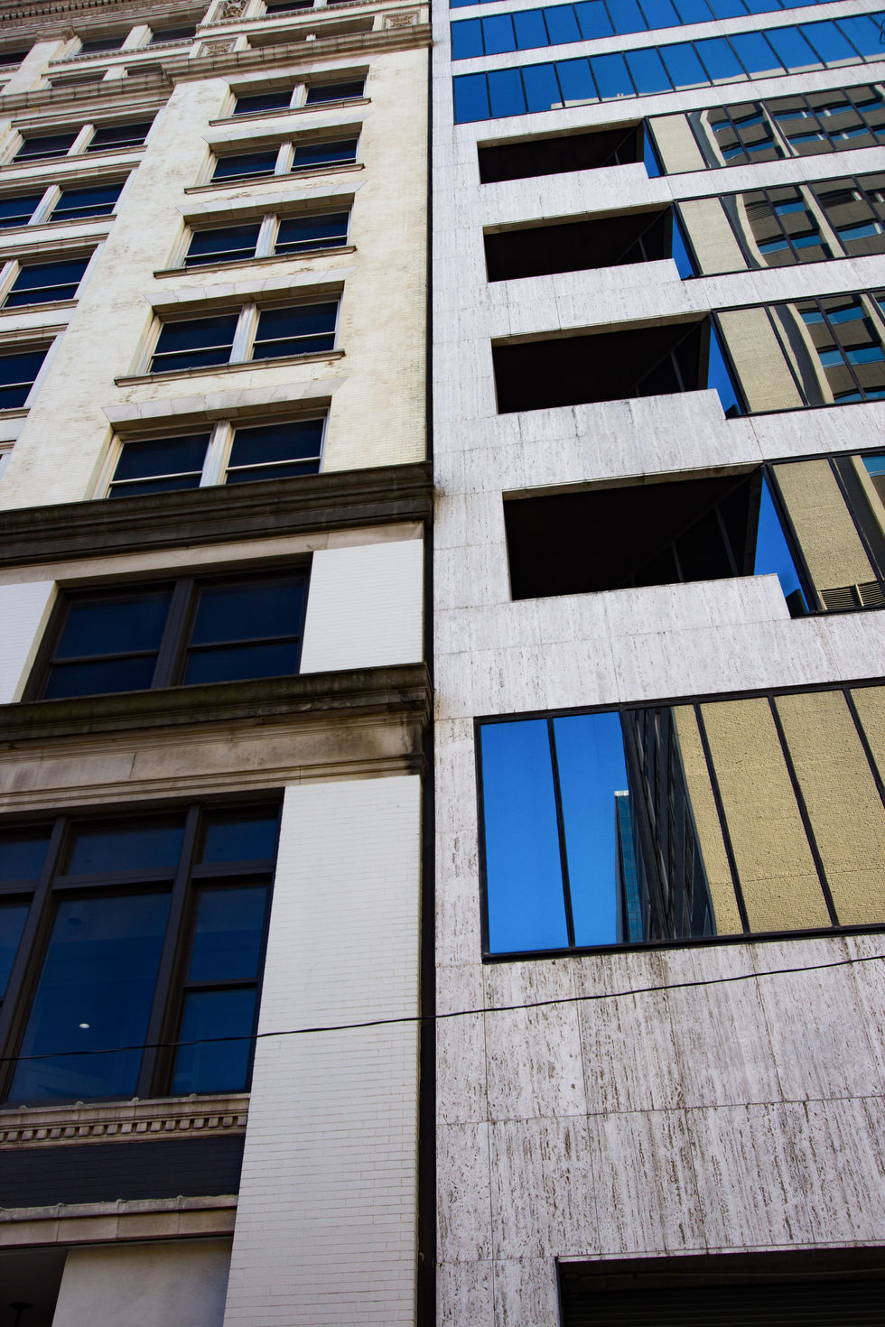 These are some images created from various architecture around the city. Drea uses the juxtaposition of the buildings, as well as the geometric lines and shapes in their design to draw graphic pictures in the sky.